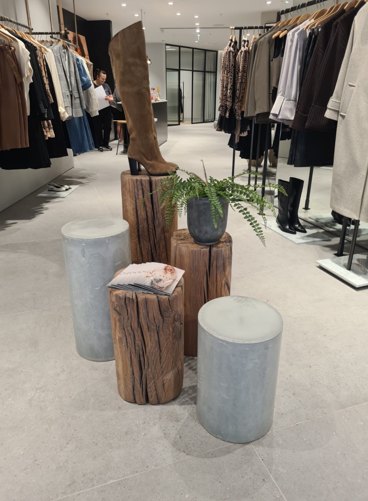 Aesthetically, concrete fixtures offer a modern, premium look that complements many retail styles. They provide a neutral, minimalist backdrop that helps products stand out, while their weight and form create a sense of permanence and quality within the space.